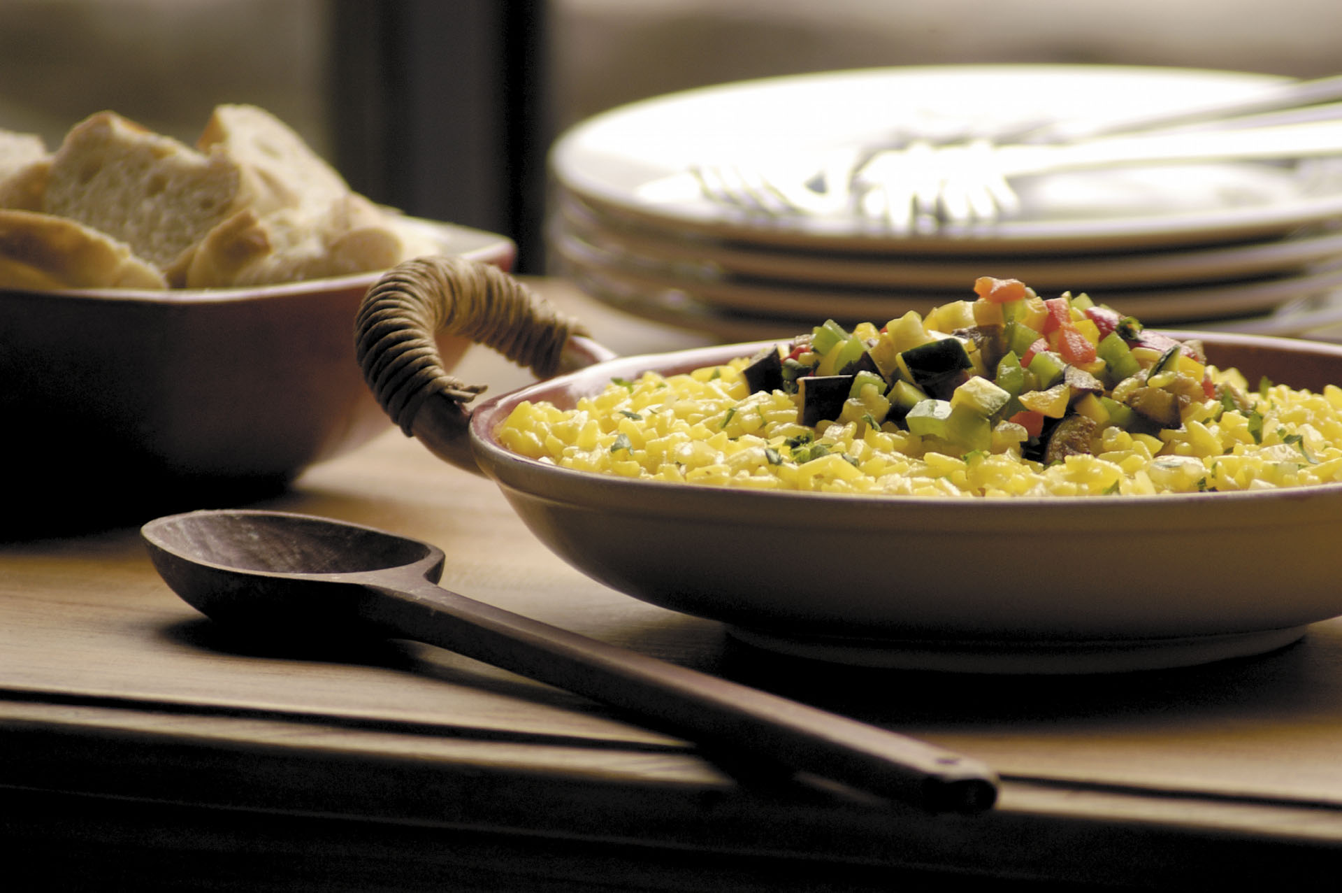 Colocar un recipiente a fuego y cuando esté caliente agregar la mitad del Aceite Puro de Girasol Natura, verter el arroz y la cebolla, revolver hasta que el arroz esté opaco y la cebolla transparente, volcar el vino y luego el caldo con el azafrán disuelto en él. Revolver constantemente durante 15 minutos, agregar luego el queso rallado y continuar la cocción revolviendo hasta que el arroz esté cocido y cremoso.