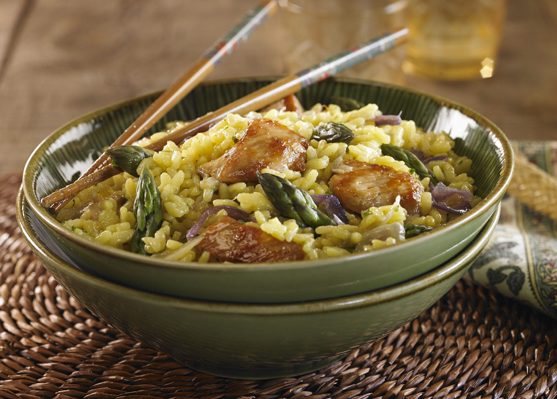 Rehogar la cebolla en una sartén con el Aceite Natura Blend bien caliente, cuando estén transparentes agregar el pollo y dejar que se dore. Agregar el arroz y remover bien. Añadir el azafrán disuelto en el vino, y cuatro tazas de agua caliente. Cocinar por espacio de 18 minutos sin revolver. Antes de retirar de la cocción incorporar el curry y el perejil picado.