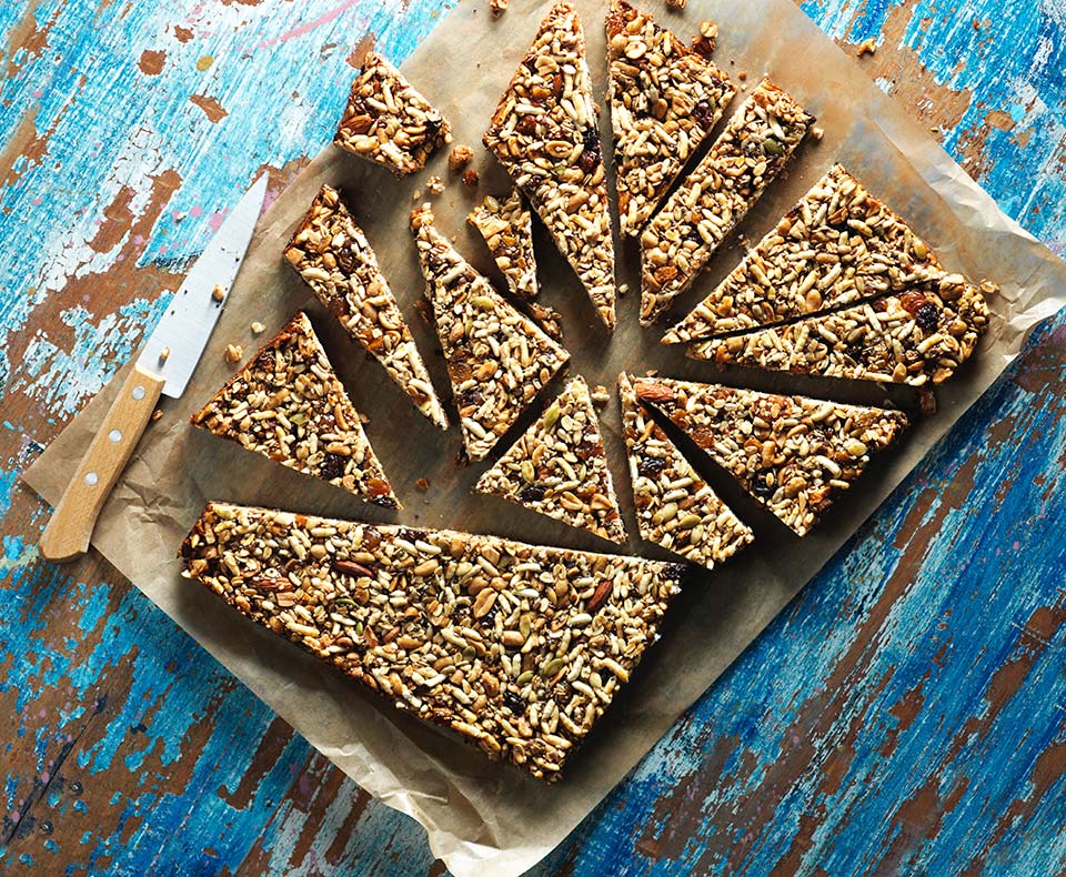 Lubricar otra hoja de papel aluminio con Rocío Vegetal Natura, cubrir la mezcla y con la ayuda de las manos prensar muy bien. Dejar entibiar, cortar las barritas y dejar enfriar. Conservarlas en bolsitas individuales o envase hermético.