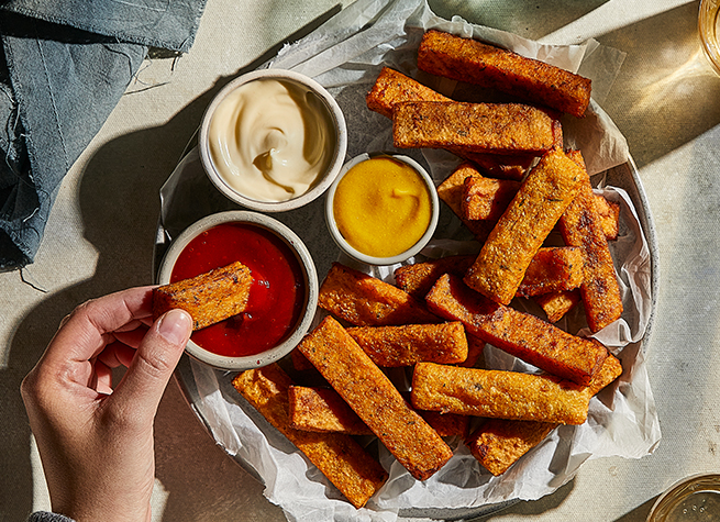 Servir en una canasta acompañados por cuencos de Aderezos Natura.