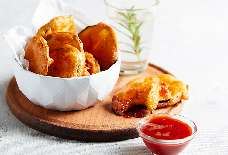 Berenjenas crujientes con aderezo de ketchup agridulce