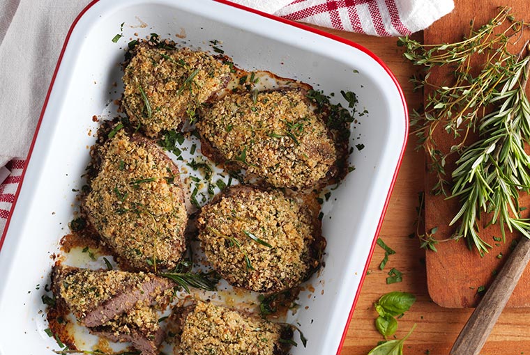 Calentar en una sartén un hilo de Aceite de Oliva Selección Natura, disponer los bifes, agregar una pizca de sal, sellarlos de un lado y al girarlos distribuir sobre la parte cocida el relleno que formará la costra, completar el sellado y retirar del fuego.