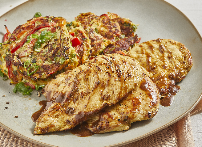 Bifes de pollo con puffer de verdura