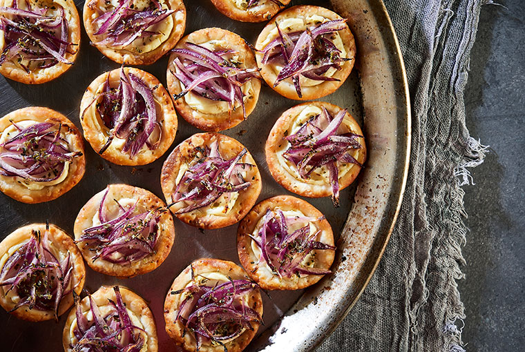 Distribuir una cucharada de queso blanco untable y un puñado de cebolla, condimentar con una pizca de orégano, sal y un hilo de Aceite de Oliva Intenso Natura.