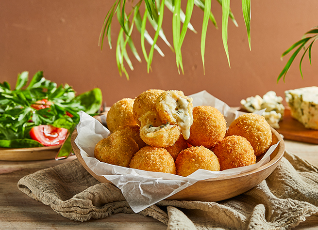 Bombas de queso azul y nuez