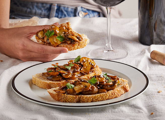 Calentar en una sartén el restante Aceite de Oliva Clásico Natura, disponer los champiñones de tal forma que cubran la sartén, no mezclarlos ni revolver hasta que comiencen a dorarse. Luego añadir el aliño preparado con la mezcla del aceto, la miel y la Mostaza Natura. Revolver suavemente hasta que se evapore el líquido. Apagar el fuego, ajustar con sal y pimienta de ser necesario.