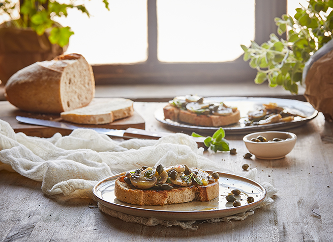 Bruschettas de Champiñones y Alcaparras