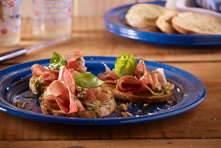 Bruschettas de jamón crudo al pesto
