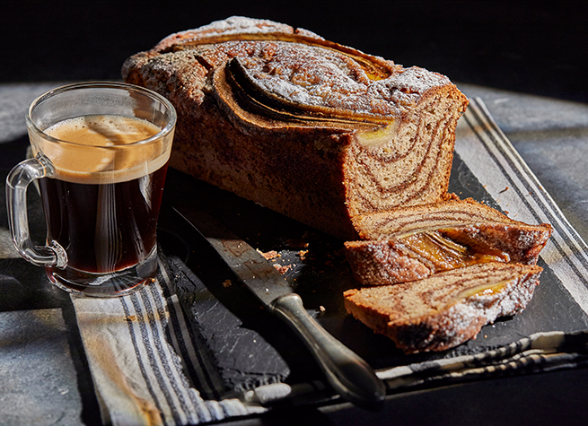 En un bowl batir el huevo con el Aceite Puro de Girasol Natura y el azúcar hasta obtener una consistencia cremosa. Incorporar la mezcla de las bananas reservadas y la harina, y batir hasta integrar. Separar la mezcla en dos partes. En una de ellas agregar el cacao amargo e integrar sin generar grumos.