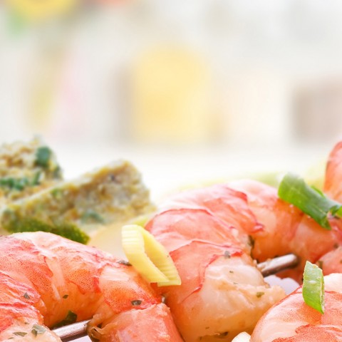 Decorar el centro con los camarones.