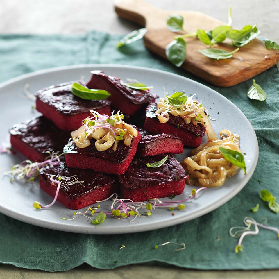 Procesar las remolachas con la leche y el huevo. Agregar el queso y salar a gusto. Disponer el preparado en moldes individuales para budín previamente lubricados con abundante Rocío Vegetal Natura y cocinar a baño María en horno precalentado a temperatura media-alta por aproximadamente 50 minutos hasta lograr su cocción.