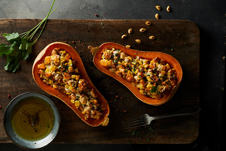 Rellenar las calabazas y espolvorear con hojas de perejil.