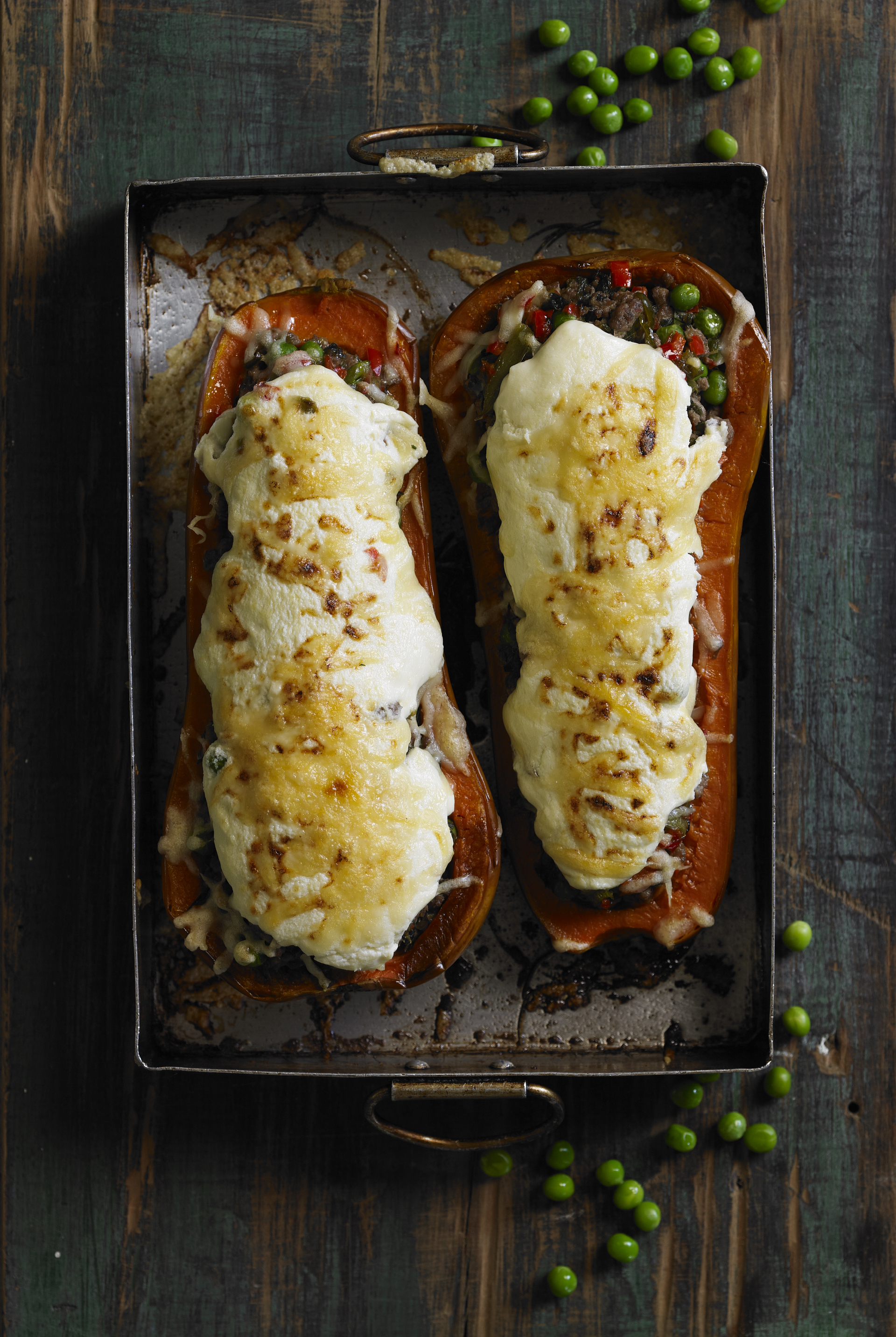 Rellenar las calabazas con la preparación de carne. Disponerlas en una placa previamente rociada con Rocío Vegetal Natura. Cubrir las calabazas con el queso crema firme y el queso parmesano. Llevarlas a horno fuerte hasta que comience a gratinar el queso. Servir bien calientes.