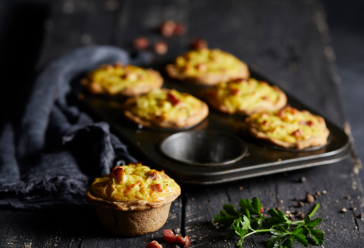 Para el armado de las canastitas rellenar cada molde, espolvorear con el queso parmesano restante.