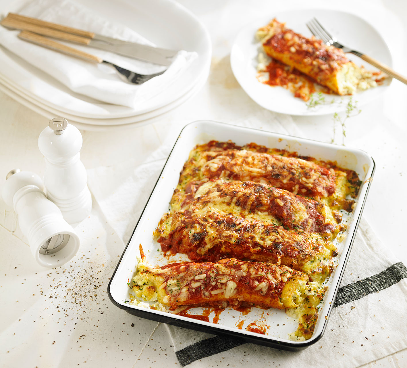 Canelones a los cuatro quesos con salsa mixta sin TACC