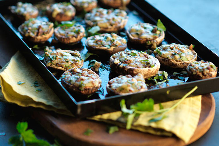 Rellenar los sombreros de los champiñones con la mezcla y disponerlos sobre una placa lubricada con Aceite de Oliva Selección Natura, espolvorear con pimienta negra de molinillo y cocinar durante 25 minutos aproximadamente hasta gratinar en horno precalentado a temperatura media. Retirar, dejar entibar y servir espolvoreados con perejil picado.