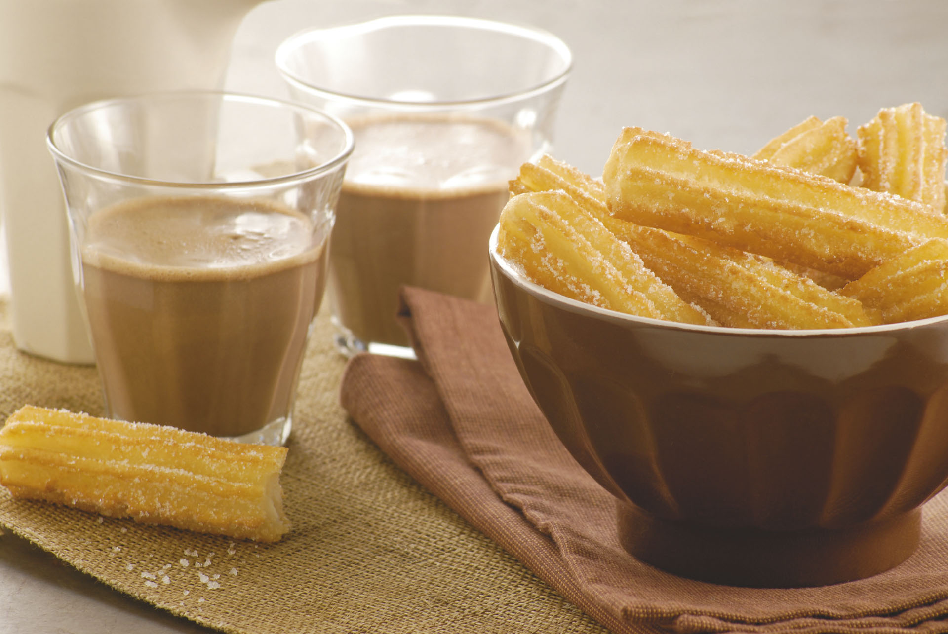 Churros: Colocar el agua, la leche, el Aceite Puro de Girasol Natura, la sal y la ralladura en una cacerola y dejar que rompa el hervor. Retirar del fuego, incorporar de golpe la harina y mezclar bien hasta formar una pasta e incorporar el huevo.