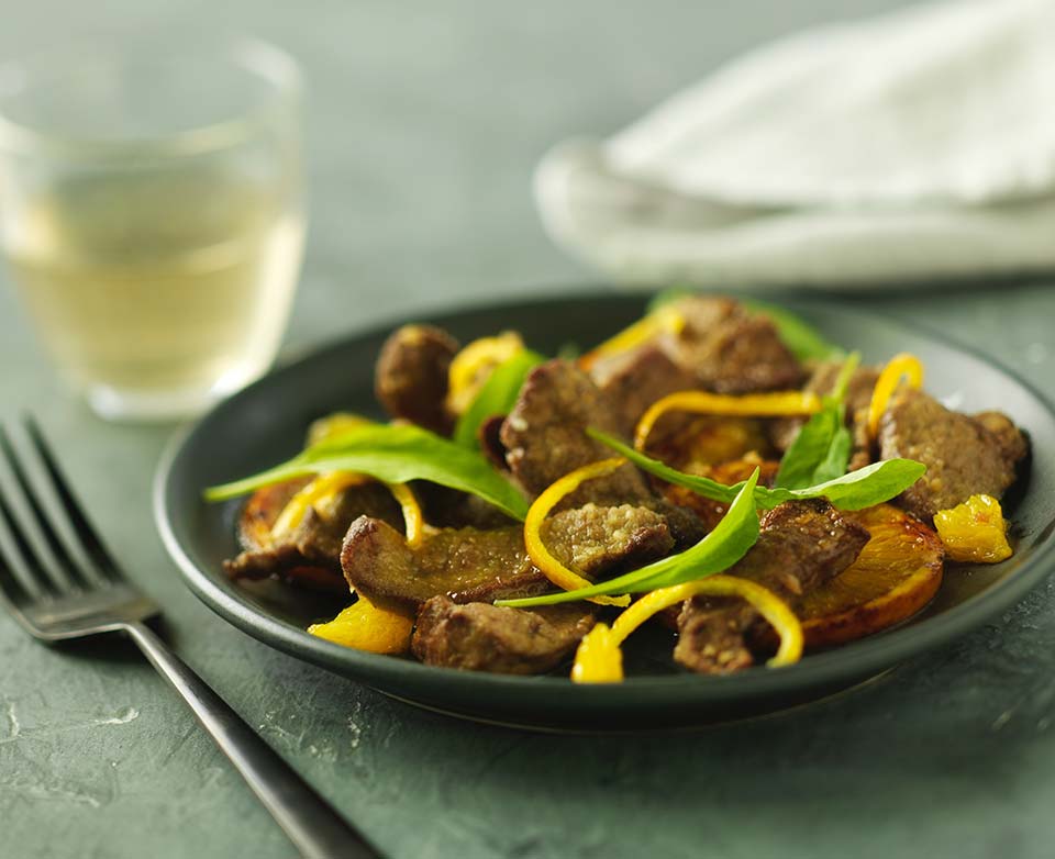 Dorar en otra sartén las fetas de naranja con el Aceite Natura Blend restante durante dos minutos.