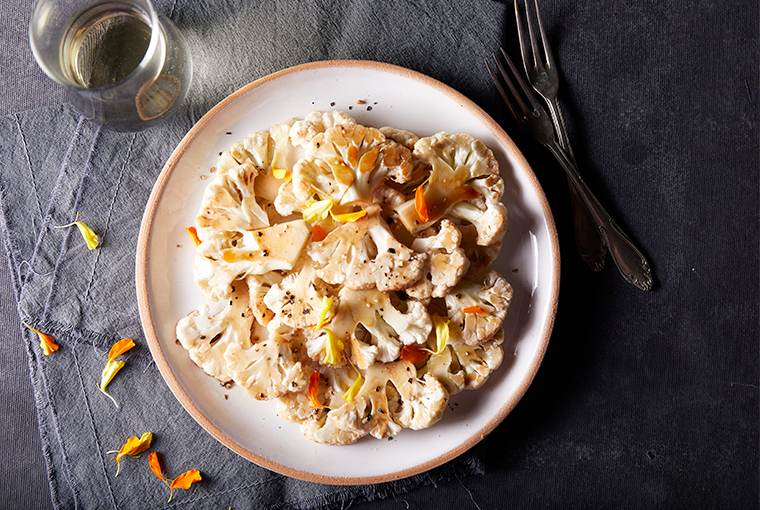 Retirar la base de hojas verdes del coliflor, lavarlo y escurrirlo bien. Separar las flores, cortarlas en fetas muy finas y disponerlas en un bowl. Salar a gusto y condimentar con el Aceite de Oliva Clásico Natura y el aceto balsámico, mezclar. Macerar en heladera durante dos o tres horas. Retirar y disponer las fetas de coliflor en una fuente, moler por encima pimienta a gusto, esparcir las nueces trozadas y las láminas de queso tipo sardo. Servir.