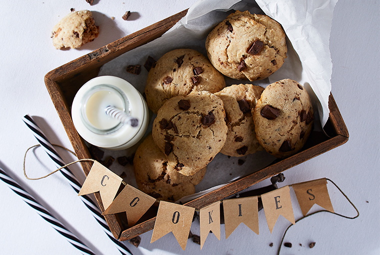 En un bowl mezclar el aquafaba con el Aceite Puro de Girasol Natura, el azúcar mascabo y la esencia de vainilla. En otro recipiente, tamizar las harinas y la sal e incorporar de a poco a la preparación anterior, agregar el chocolate picado integrando bien hasta formar una pasta. Llevar a la heladera por 30 minutos.
