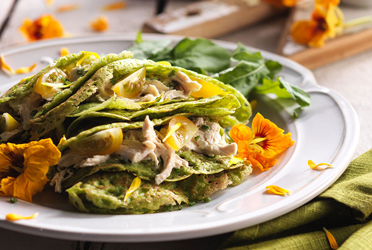 Calentar una sartén lubricada con Rocío Vegetal Natura, disponer un cucharón generoso de mezcla distribuyéndola sobre toda la superficie, cocinar de ambos lados. Retirar y repetir la operación hasta terminar la mezcla.