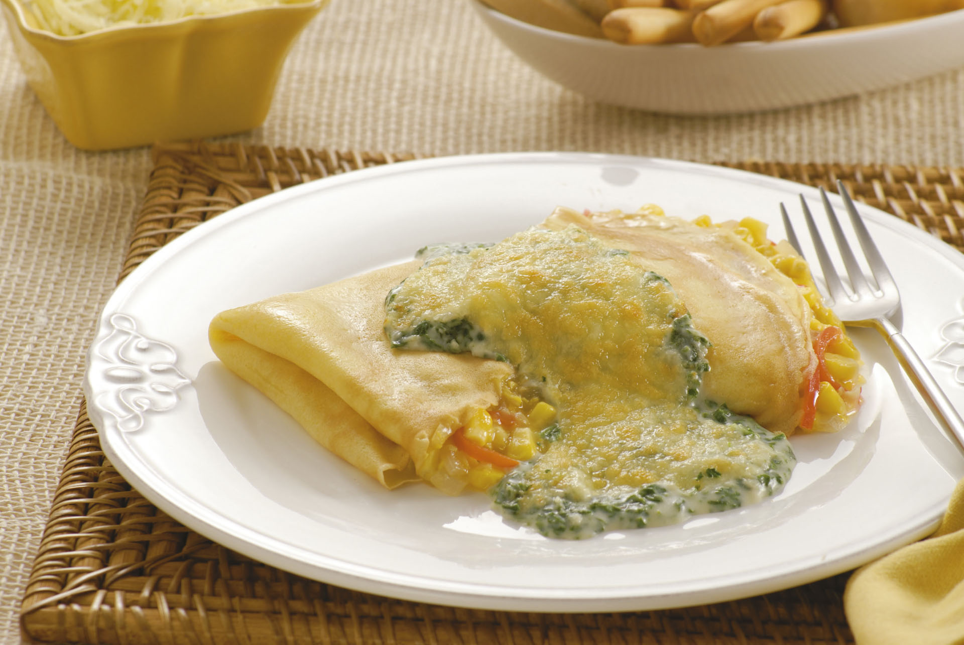Armado: colocar sobre el crepe, dos o tres cucharadas del relleno. Doblar en tres y disponer en una fuente para horno lubricada con Rocío Vegetal Natura. Cubrir con la salsa y por encima colocar el queso en hebras. Llevar a horno fuerte hasta que el queso se haya gratinado. Retirar y servir bien caliente.