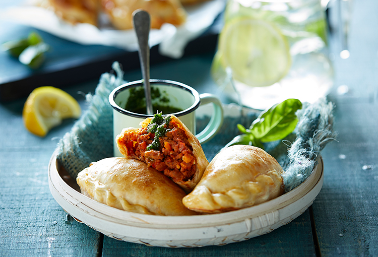 Disponer las empanadas sobre una placa para horno lubricada con Rocío Vegetal Natura, pincelarlas con el huevo ligeramente batido y llevar a horno fuerte hasta su cocción. Retirar y servir.