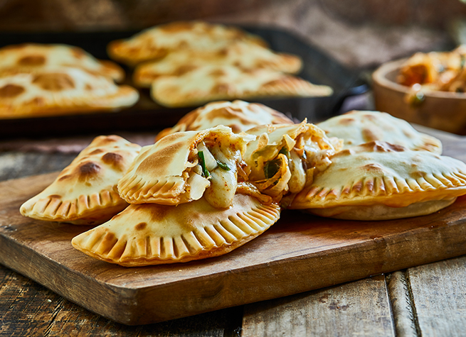 Para el relleno, calentar el Aceite Blend Natura en una sartén y dorar las cebollas y la cebollita de verdeo. Una vez que estén tiernas y transparentes, agregar el orégano, la paprika y salpimentar a gusto. Dejar enfriar. Una vez frío, incorporar a la mozzarella rallada.