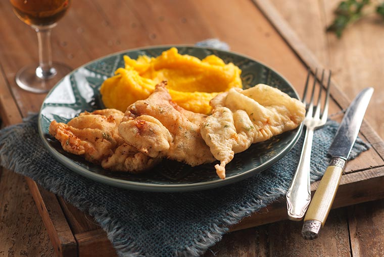 Calentar el Aceite Blend Natura en una sartén, pasar el cerdo por la mezcla de huevo y harina cuidando que quede bien cubierto. Cocinarlo de ambos lados de 2 a 3 minutos o hasta que esté dorado. Retirar de la cocción y disponer la carne en una fuente con papel absorbente.