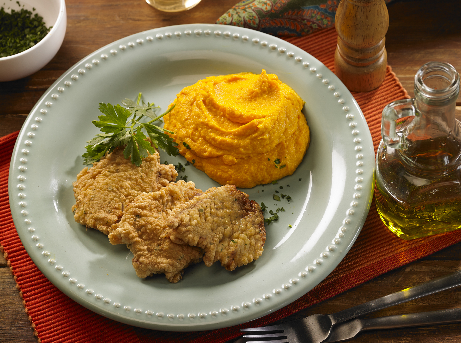 Colocar cada escalope en un plato y servir acompañado del puré de zanahorias.