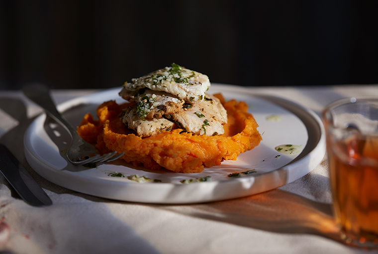 Servir los filetes espolvoreados con perejil fresco picado, acompañados del puré a la mostaza.