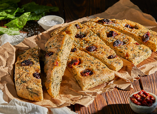 En un bowl disponer las harinas distribuir por los bordes una cucharada de sal . Hacer un hueco en el centro, colocar allí un pocillo chico de Aceite de Oliva Intenso Natura, la espinaca procesada previamente condimentada con una pizca de pimienta y nuez moscada y la levadura ya fermentada. Integrar con ayuda de las manos añadiendo agua tibia de a poco hasta obtener una masa homogénea. Dejar descansar tapada durante 20 minutos en un lugar cálido.