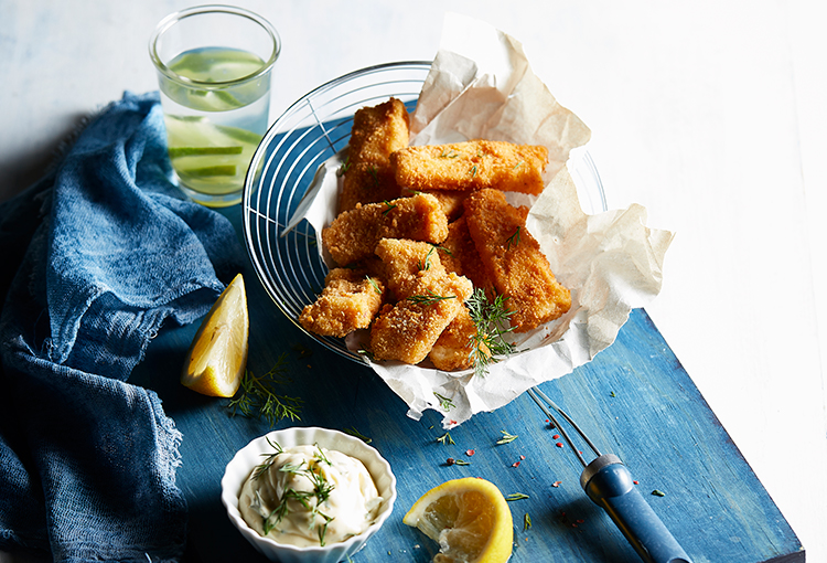 Pasar los bastones de lenguado por harina, por el huevo y rebozarlos en el pan rallado. Freírlos, de a poco a la vez, en abundante Aceite Puro de Girasol Natura caliente. Retirar, escurrir sobre papel absorbente de cocina y servir calientes acompañados del dip al eneldo.