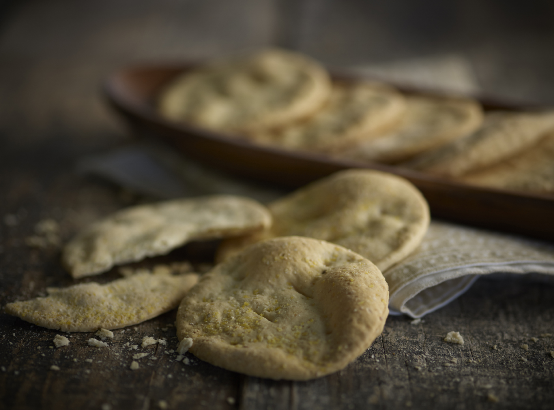 Acomodar las galletas sobre una placa para horno lubricada con rocío vegetal Natura. Espolvorear las galletas con harina de maíz, realizar unos pinches sobre la masa con un tenedor y dejar descansar durante 15 minutos. Llevar a horno medio durante 30 minutos o hasta que estén secas y doradas por fuera.
