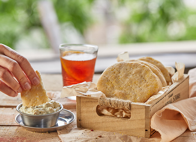 Para las galletas, disponer en un bowl en forma de corona la harina, y en el centro agregar el Aceite Puro de Girasol Natura, la levadura, el azúcar y la sal por los bordes. Incorporar el agua de a poco hasta obtener un bollo uniforme. Dejar descansar la masa durante unos 10 minutos cubierta con un paño de cocina. Luego, tomar pequeños trozos de masa, espolvorear la mesada con polenta y estirar con ayuda de un palo de amasar hasta obtener una masa fina. Darle la forma deseada y disponer sobre una placa lubricada con Rocío Vegetal Natura, pincharlas con un tenedor y cocinar en horno precalentado hasta dorar.