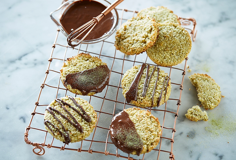 Colocar los medallones sobre una rejilla y bañarlos con el chocolate amargo. Dejar enfriar y servir o reservar en un recipiente hermético.