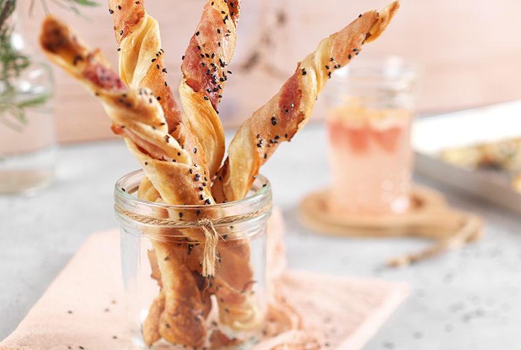 Pincelar cada disco de empanada con la Mostaza Natura y cubrirlo con dos fetitas de panceta, mojar los bordes con agua y enrollarlo con una ligera presión de los dedos para adherirlos bien y que se formen los grisines. Disponerlos sobre la placa reservada, pintar con el huevo y espolvorear con las semillas. Cocinar en horno hasta que estén bien dorados. Servir calientes o fríos.