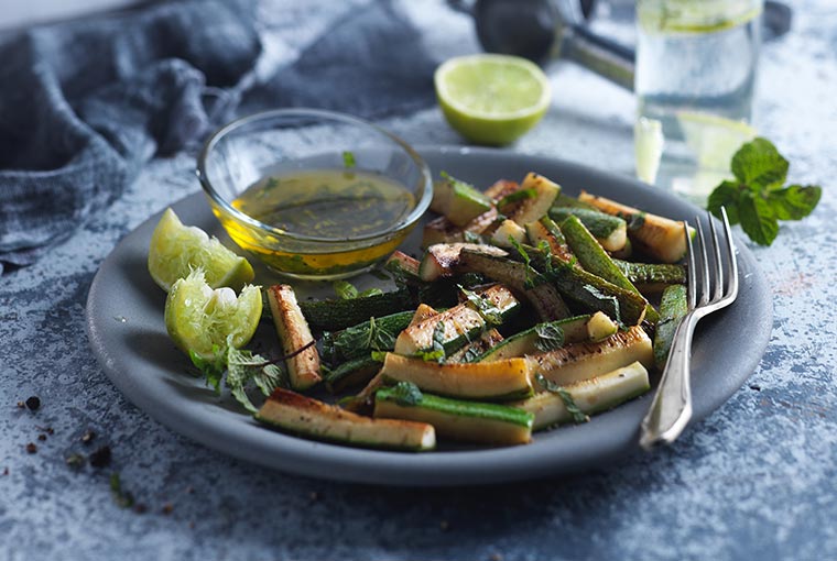 Retirar los zucchinis y condimentar con el aderezo. Ideal realizar la guarnición unas horas antes de servir para potenciar el gusto de los zucchinis.