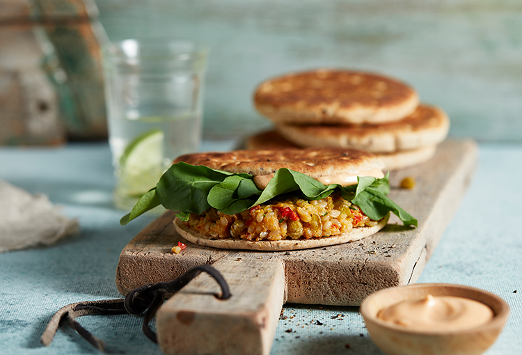 Con ayuda de un molde o las manos húmedas darle forma de hamburguesas, colocarlas en una sartén lubricada con Rocío Vegetal Natura y cocinarlas, tapadas, de ambos lados, hasta que estén doradas.
