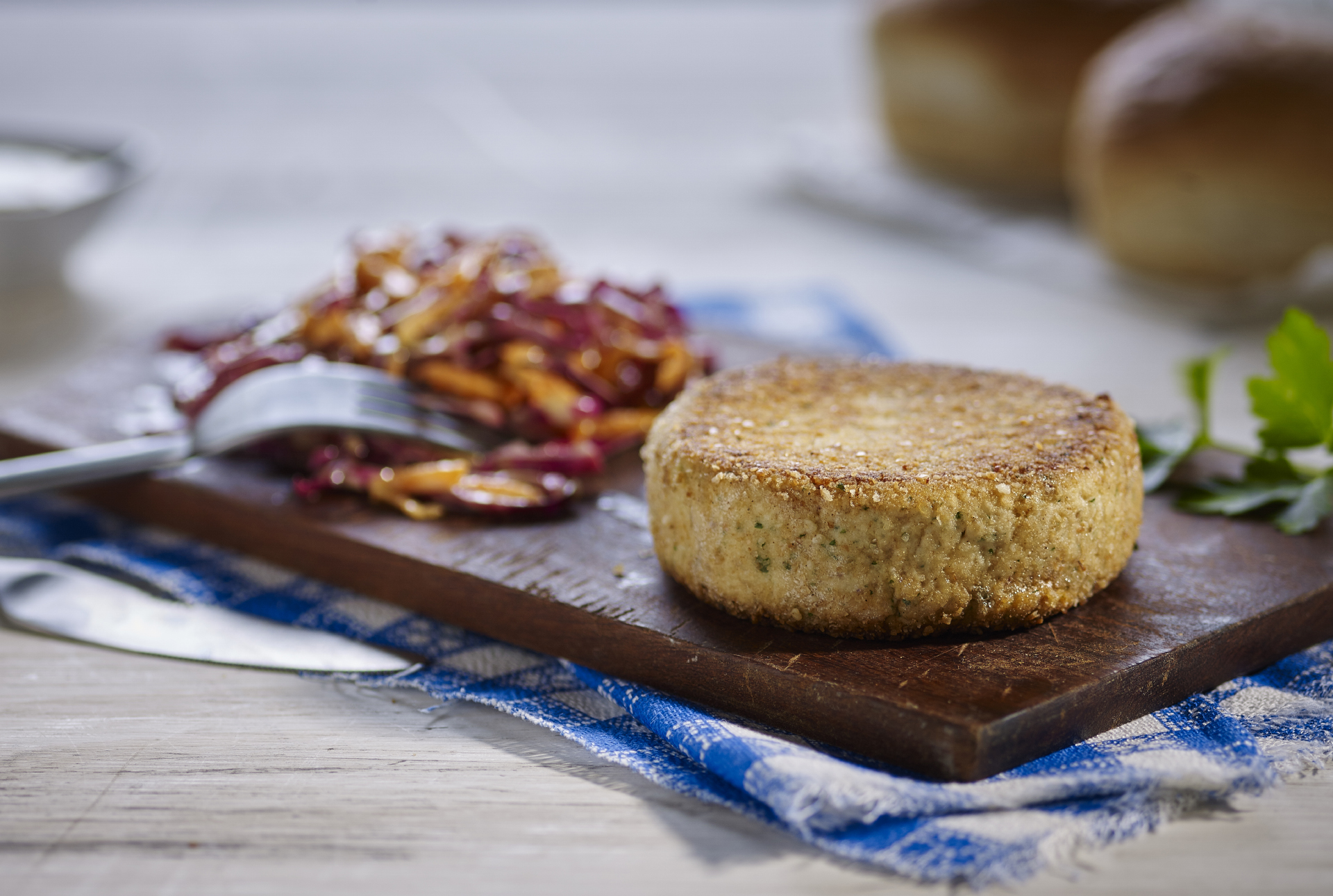 Formar 4 hamburguesas con la preparación y rebozarlas con el pan rallado. Refrigerar durante 30 minutos y luego cocinar en una placa para horno previamente lubricada con Rocío Vegetal Natura. Retirar una vez que las hamburguesas estén doradas.