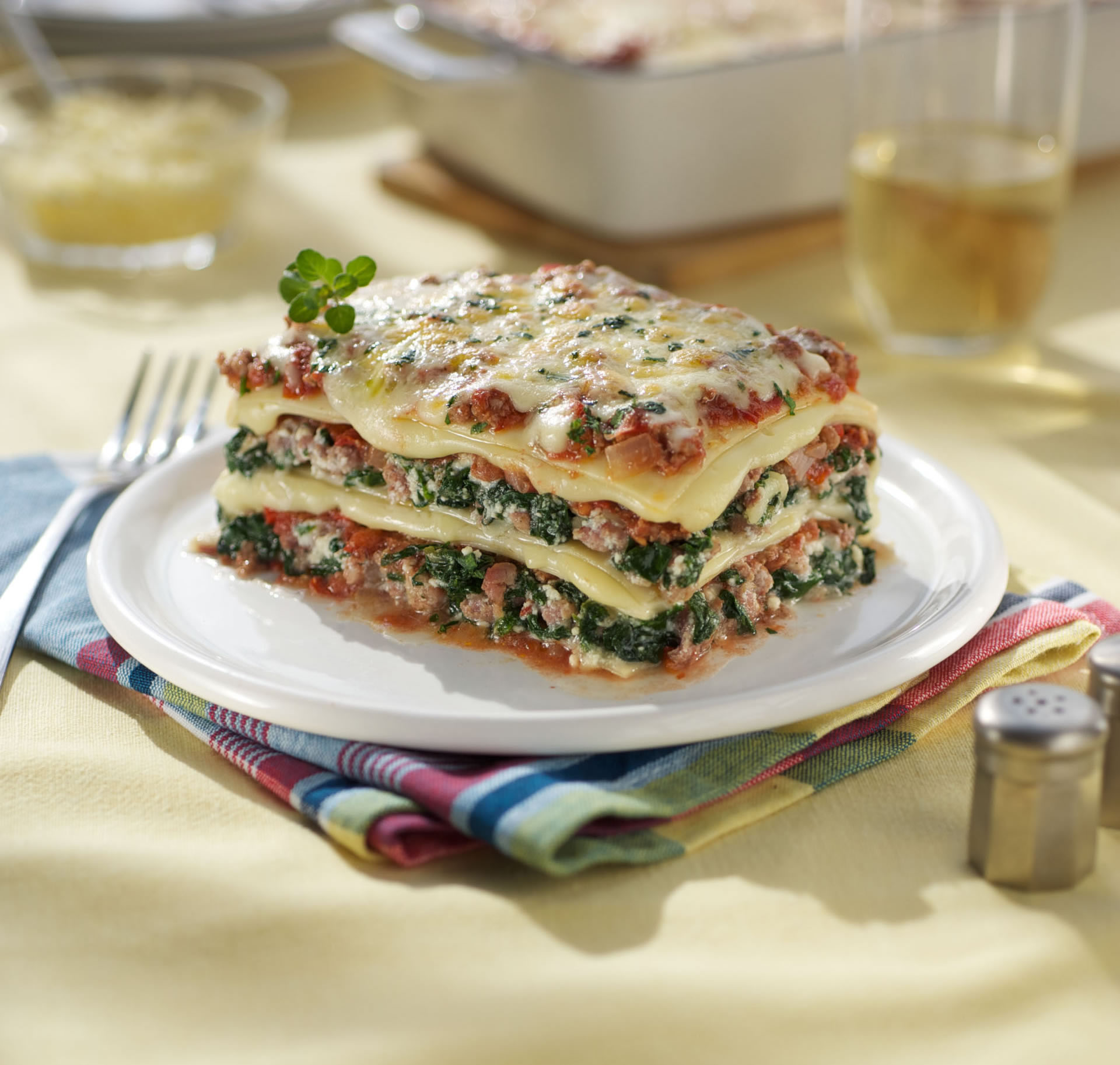 En una fuente térmica colocar salsa, sobre ésta acomodar las hojas de masa, espolvorearlas con provolone rallado y parte del relleno.