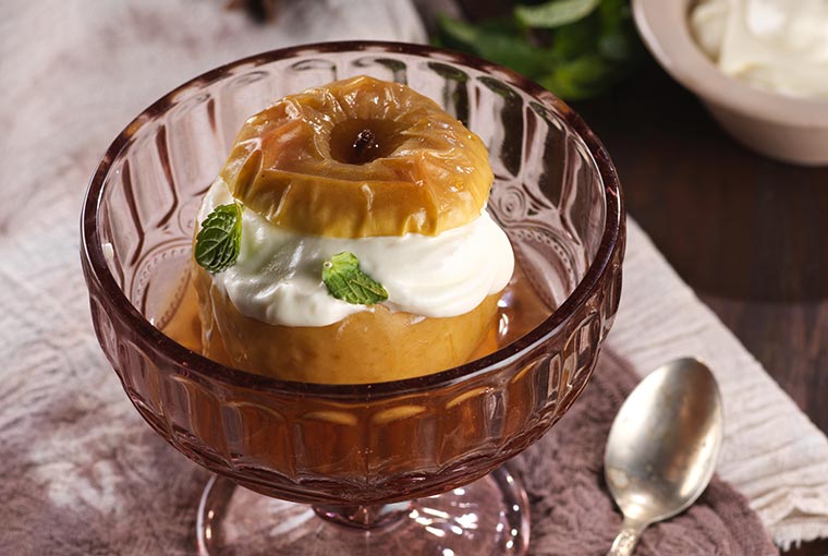 Colocar las manzanas en una asadera y verter por encima el agua con el vino y el edulcorante. Volver a colocar la tapa y rociar las manzanas con Rocío Vegetal Natura.