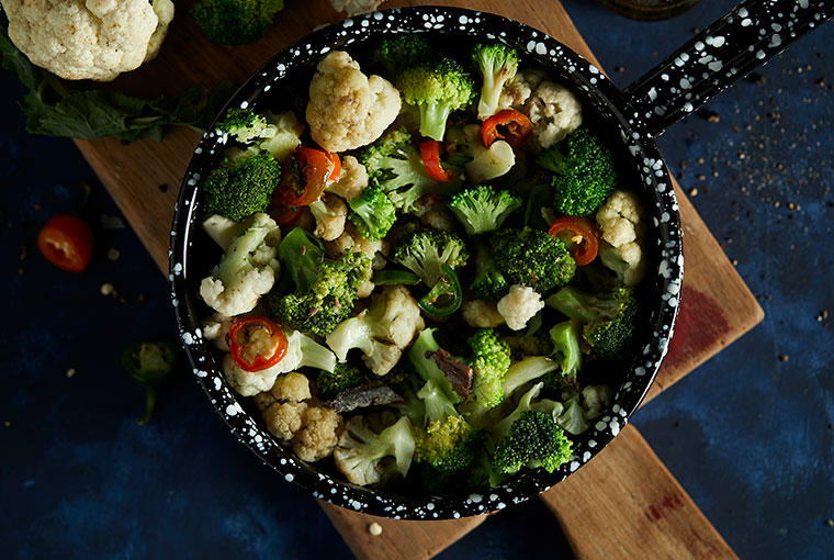 Luego calentar en una sartén a fuego mínimo el Aceite Blend Natura con los ajos cortados en láminas, las anchoas picadas y el ají picante picado. Agregar las verduras, integrar cuidadosamente y cocinar durante unos minutos más. Servir solo o acompañando pastas secas (*).