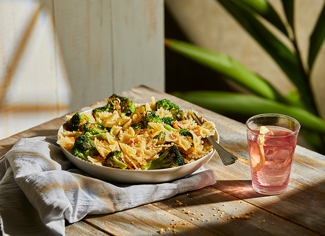 Mientras tanto, cocinar los fideos en abundante agua salada, retirar al dente, escurrir y unirlos a los brócolis durante unos minutos hasta integrar los sabores.
