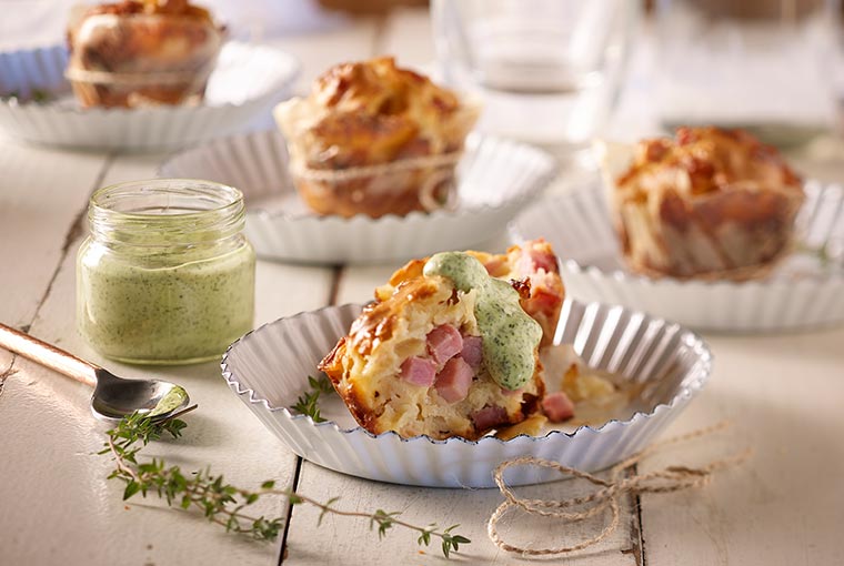 Procesar la Mayonesa Natura junto con las hojas de rúcula picadas. Una vez listos los muffins, retirar, dejar entibiar y servir acompañado del aderezo de rúcula.
