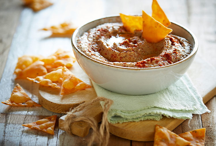 Nachos con humus de aceitunas negras