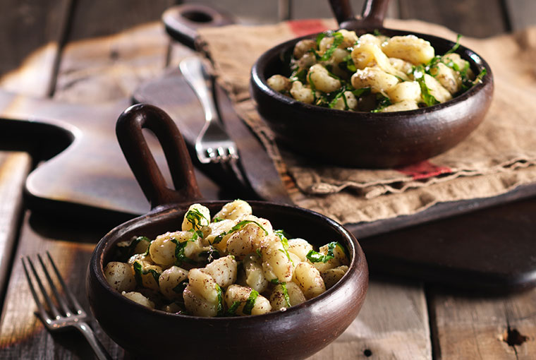 Ñoquis al grano sarraceno libres de gluten con espinaca y fontina