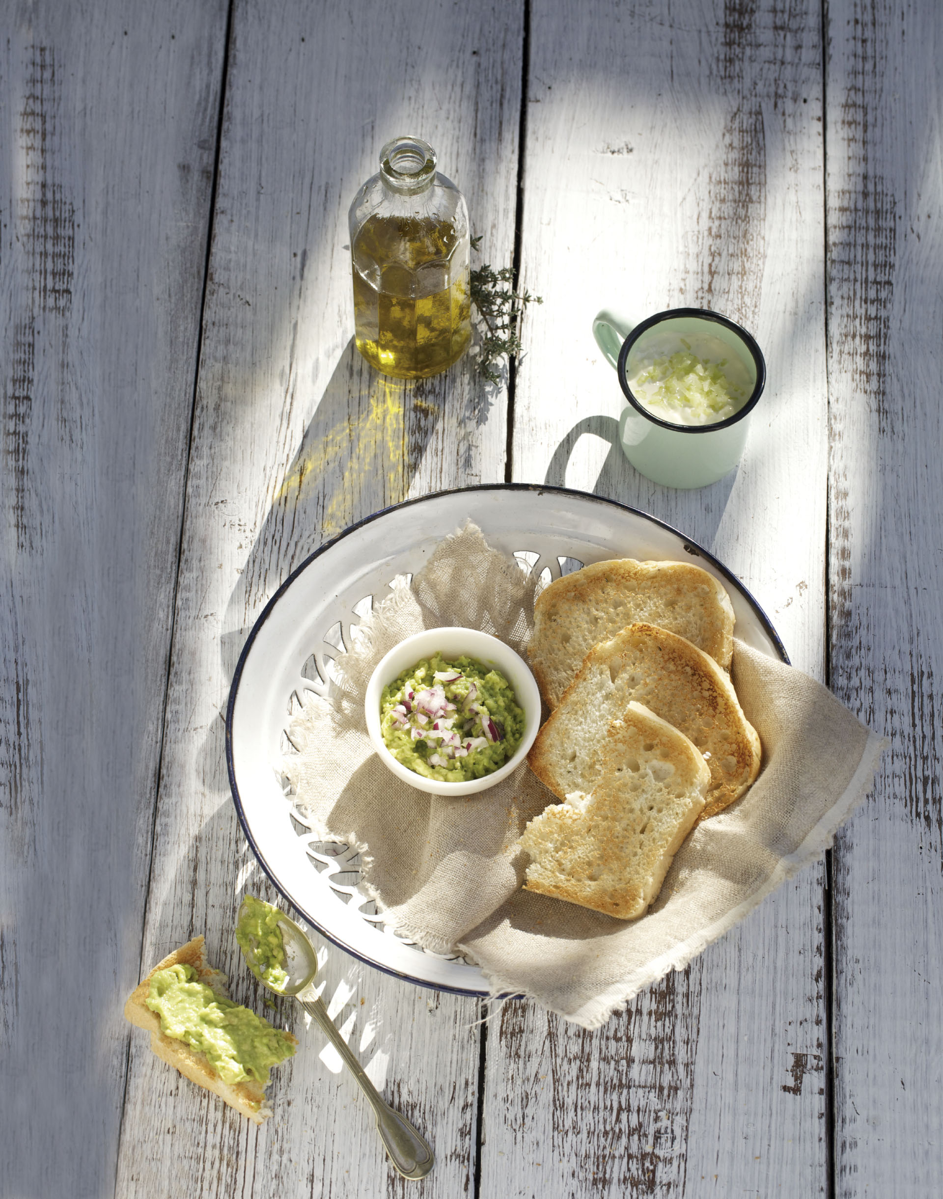 Pan de hierbas aromáticas con dips de palta y de queso azul