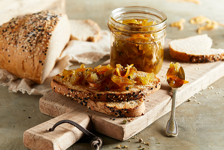 Pan integral con queso de campo y mermelada de berenjena