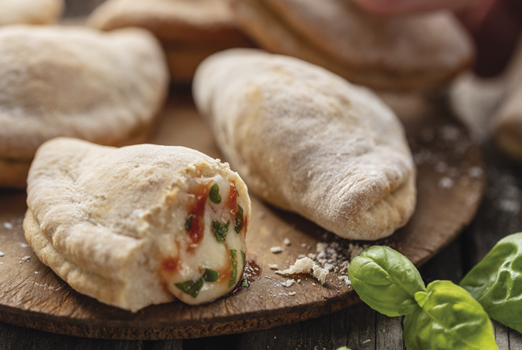 Disponerlos sobre una placa con Rocío Vegetal Oliva Natura y llevar a horno fuerte precalentado durante 20-25 minutos hasta lograr la completa cocción de la masa.